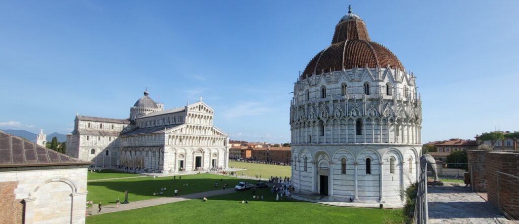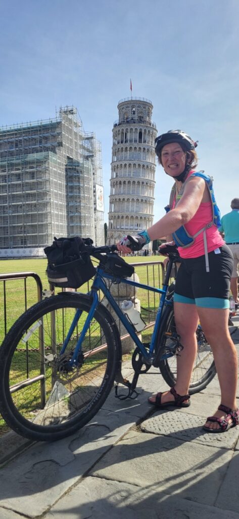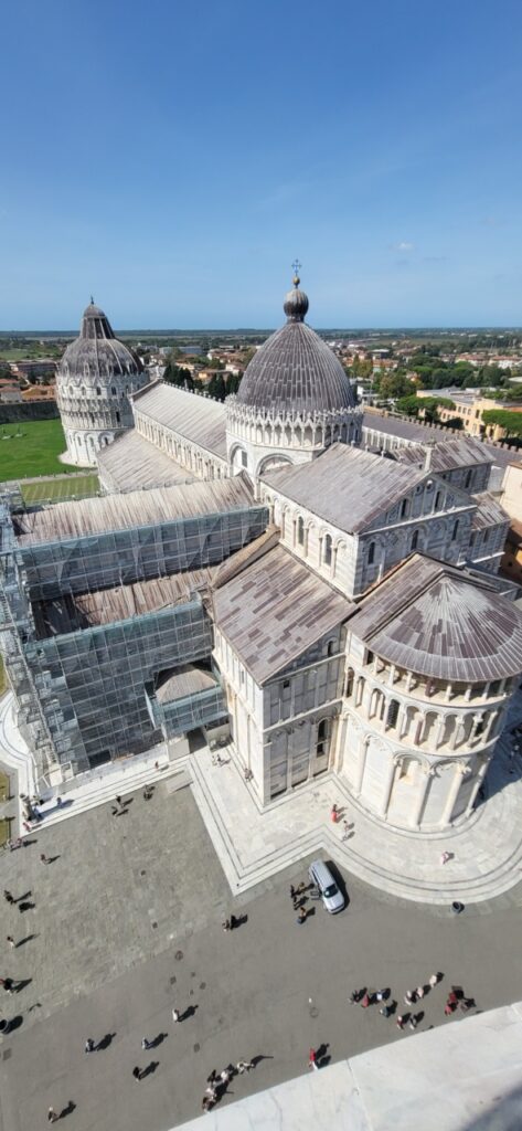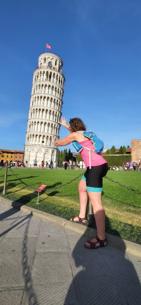 Going backwards after Dad left Lucca for home I stayed an extra night in Lucca and cycled to Pisa and back – I’ve seen the Leaning Tower before but never been up it and was keen to do that. It was very busy but loved it. It feels very odd going up the tower – spiral staircase but with a distinct slant and it does make you feel off kilter.