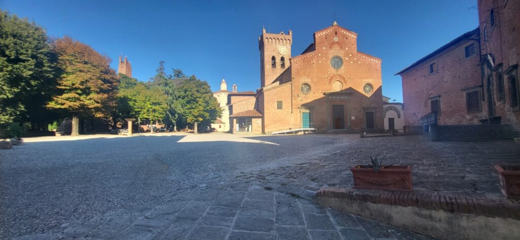 Cycling south from Lucca to San Miniato saw lots of walkers doing the Via Francigena and got speaking to some of them including 3 ladies from Australia – they were struggling with the heat – I thought if they are struggling there’s no help for me, forgetting that not all of Australia is toasty hot. The section from Lucca to Rome is one of the busiest sections of the pilgrimage and I should have thought of this when I was trying to get accommodation in San Miniato – no campsite near by, the hostel was full and so was the convent where the hostel said I should try. There is a website for convents that you can stay in and they are advertised as quiet peaceful places to stay which seems really appealing but as someone who doesn’t go to church I feel guilty about staying there and don’t feel that I should – on the other hand they are trying to make money like anyone else so maybe I should be brave and stay in one some time – as it happens I managed to get a room in a wee hotel.