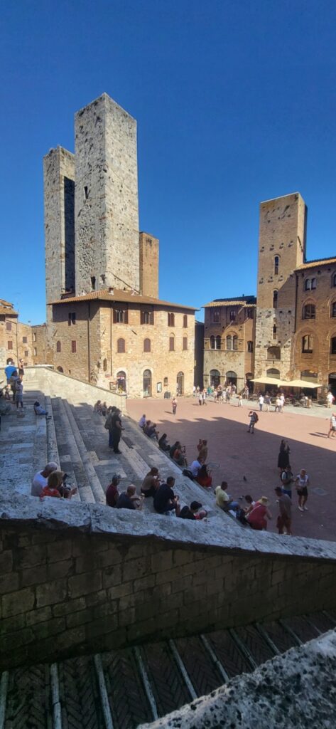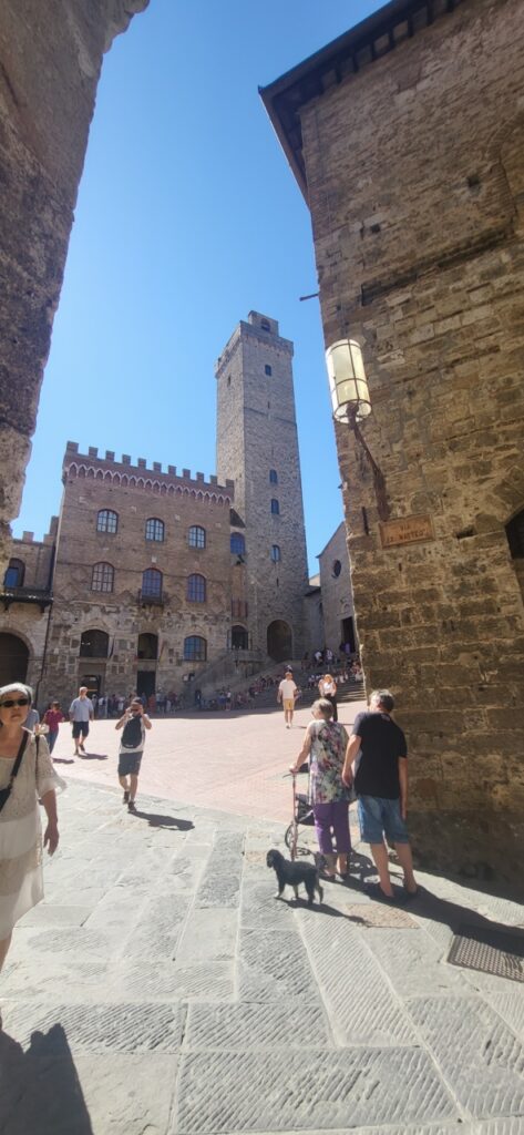 Yesterday morning I left San Miniato, stopped at San Gimignano and then onto Siena where I had a wander round this morning. This afternoon I had a wee wander through the smaller town of Asciano – all hill fort towns. San Gimignano has huge towers and the black and white marble cathedral in Siena is stunning.