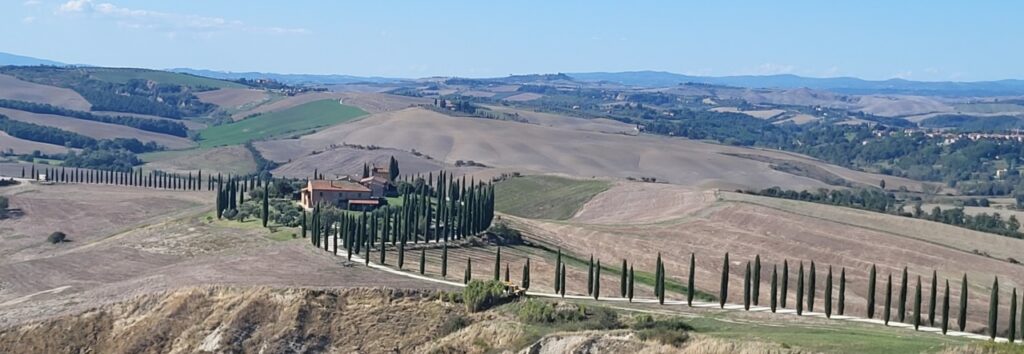 The last 2 day’s cycling in Tuscany has been beautiful. Very little traffic accept round Siena where I camped last night. Only one nutty driver in a campervan with blacked out windows who seemed to have somewhere to get to urgently yesterday. Certain areas of Italy there have been sections that haven’t been pleasant to cycle on – other road users just not giving enough space – today and yesterday I feel as if I’m in a completely different country and really enjoying it. Having said that though it’s not all been easy – it is hot hot hot – earlier today it was 30° and hilly! Passing lots of towns and villages with place names beginning with “Monte” – not surprisingly this means mountain – really not mountainous at all but lots of little hills.