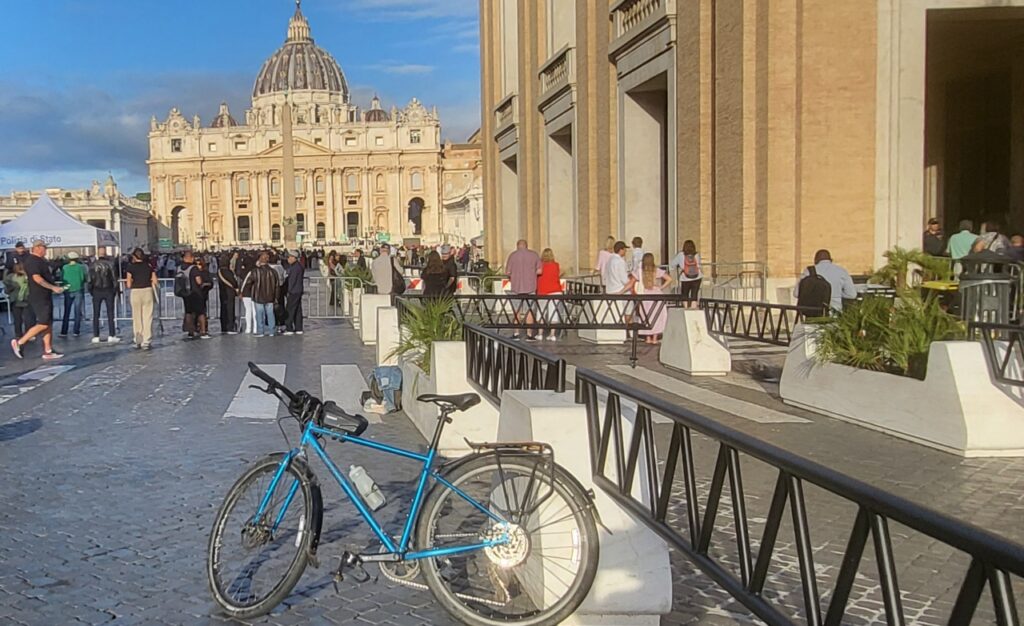 There was a cycle path following the Tiver until I had to leave it to find my accomodation – traffic in Rome was chaotic, as expected, but seems to work and I got to my accommodation without too much difficulty. Unfortunately nowhere close by that I was comfortable leaving Phil the bike so he has been parked about 4km away at some bicycle parking.