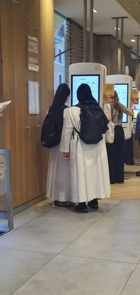 For ease one day but mostly so I could charge my phone up – taking too many pictures makes the battery run out quick – I had lunch in McDonalds next to the Vatican, and so did some of the Nuns.