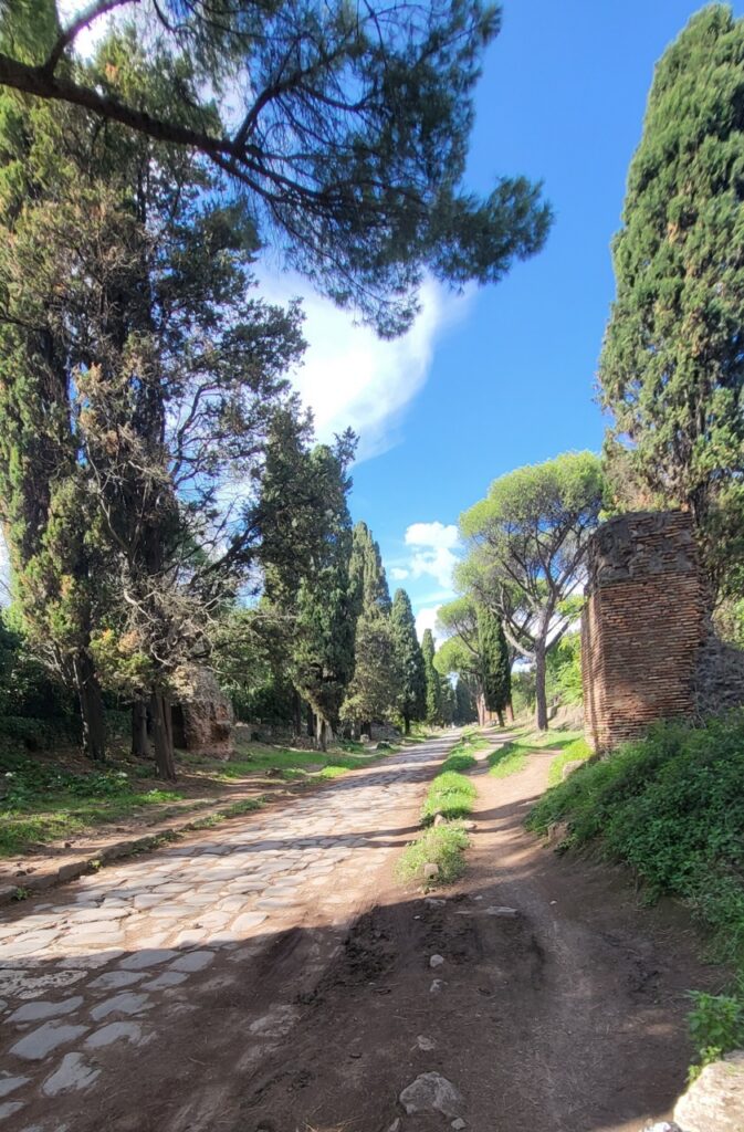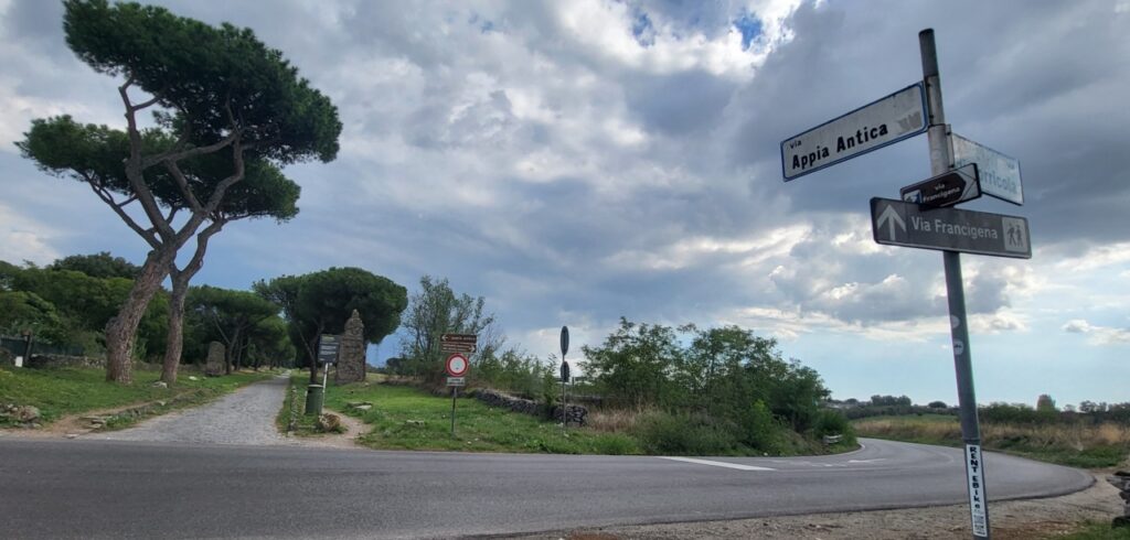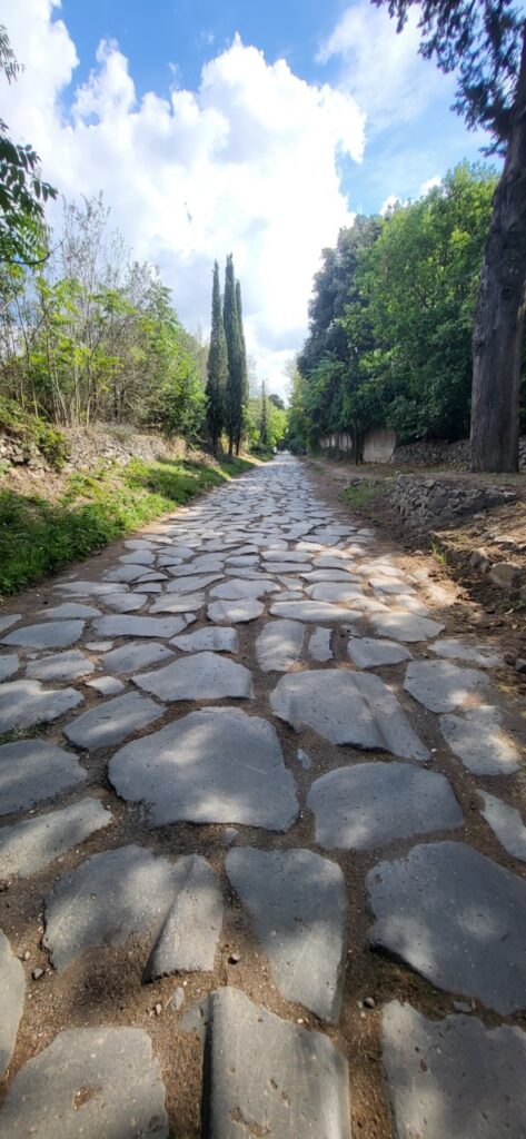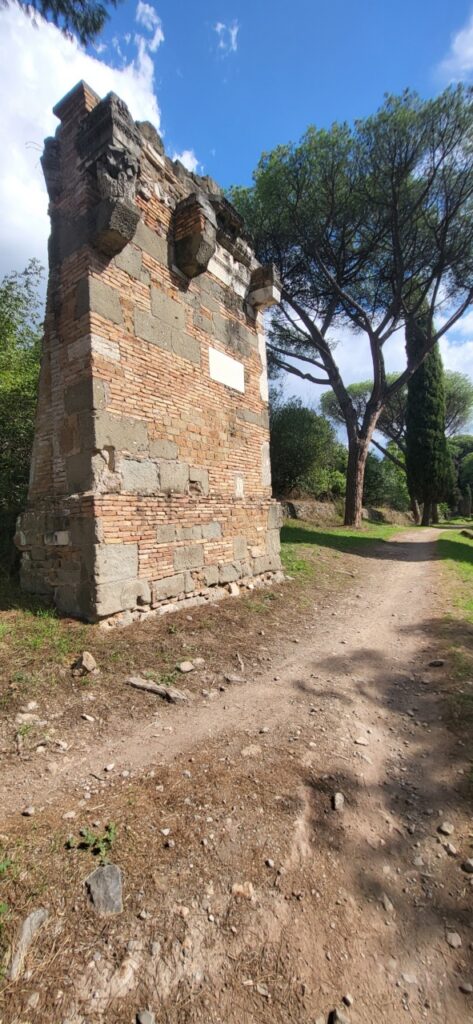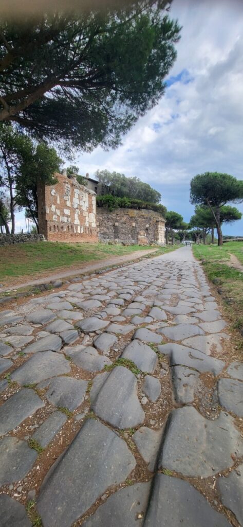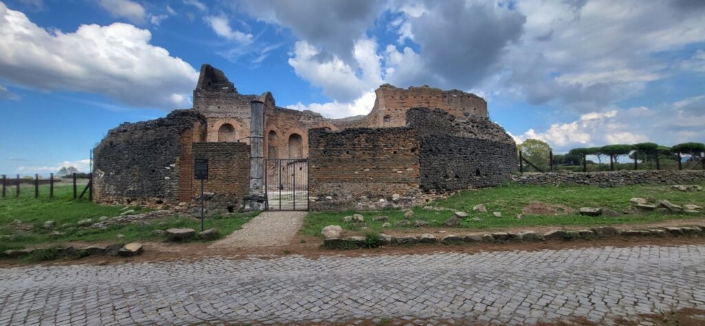 I’d checked that it was possible to cycle to the airport and compared routes on Google and Komoot which both indicated a similar route from the hostel – it was just under 20km away and 2/3’s of that was on a poker straight road, which was a bit disconcerting – were they trying to put me a motorway?? I should have thought about this though – I was in Rome and who were the best road builders in the world – you got it – The Romans – I was following the Via Appia Antica (or Appian Way) – the first highway of the Roman Republic – almost flat and poker straight but not the easiest for cycling on at times so not the fastest and there was lots to see so I took my time, which I wouldn’t have been able to do if I’d left this until tomorrow morning – the only time there’s been a benefit to having the cold.