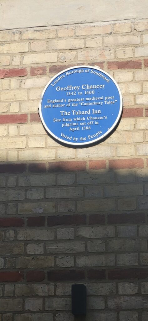 And then onto Southwark – which I’m still struggling to pronounce – the t, h and w all seem to be dropped. I wanted to see the Cathedral and the site of the Tabard Arms where the piligrims set off from on route to Canterbury Cathedral as told Geoffrey Chaucer – The Tabard Arms was was pulled down in 1873 and the only thing to indicate it was there is this blue sign.